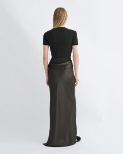 Razi – Slip-on szatén midi szoknya – fekete