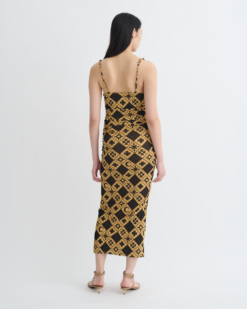 Alexa – Nyomott mintás hálós jersey midi ruha – Symbol Tile Oak