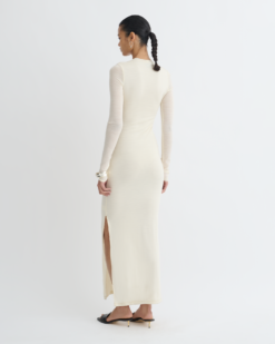 Linora – Drapézott Gyapjú Jersey Midi Ruha – Krém