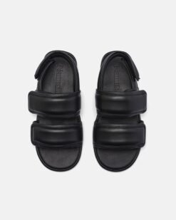 Tarrus – Lekerekített orrú, párnázott lapos szandál – Fekete