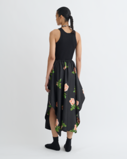 Ilariah – Nyomott Selyem Twill Midi Szoknya – Fekete/Rózsaszín
