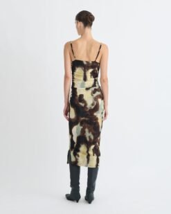 Az Alexa ruha könnyű hálós jersey anyagból készült, fodros, testhezálló felsőrésszel, amely követi a test formáját. Akvarell zsályamintájával egy csendes, magabiztos darabot testesít meg, amely a folyékonyságot strukturált eleganciával ötvözi.