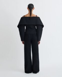 Az Amantha blézer az építészeti formákat modern könnyedséggel ötvözi. Fekete papírjersey anyagból készült, rövidített, kerek ujjú blézer, szoborszerű, visszahajtott nyakkivágással. Éles struktúrát és rugalmas alkalmazkodóképességet biztosít.