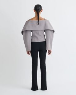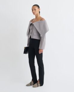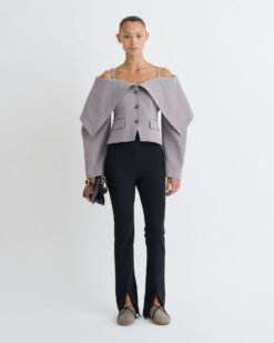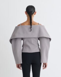 Az Amantha blézer az építészeti formákat modern könnyedséggel ötvözi. Szürke papírjersey anyagból készült, rövidített, kerek ujjú blézer, szoborszerű, visszahajtott nyakkivágással. Éles struktúrát és rugalmas alkalmazkodóképességet biztosít.