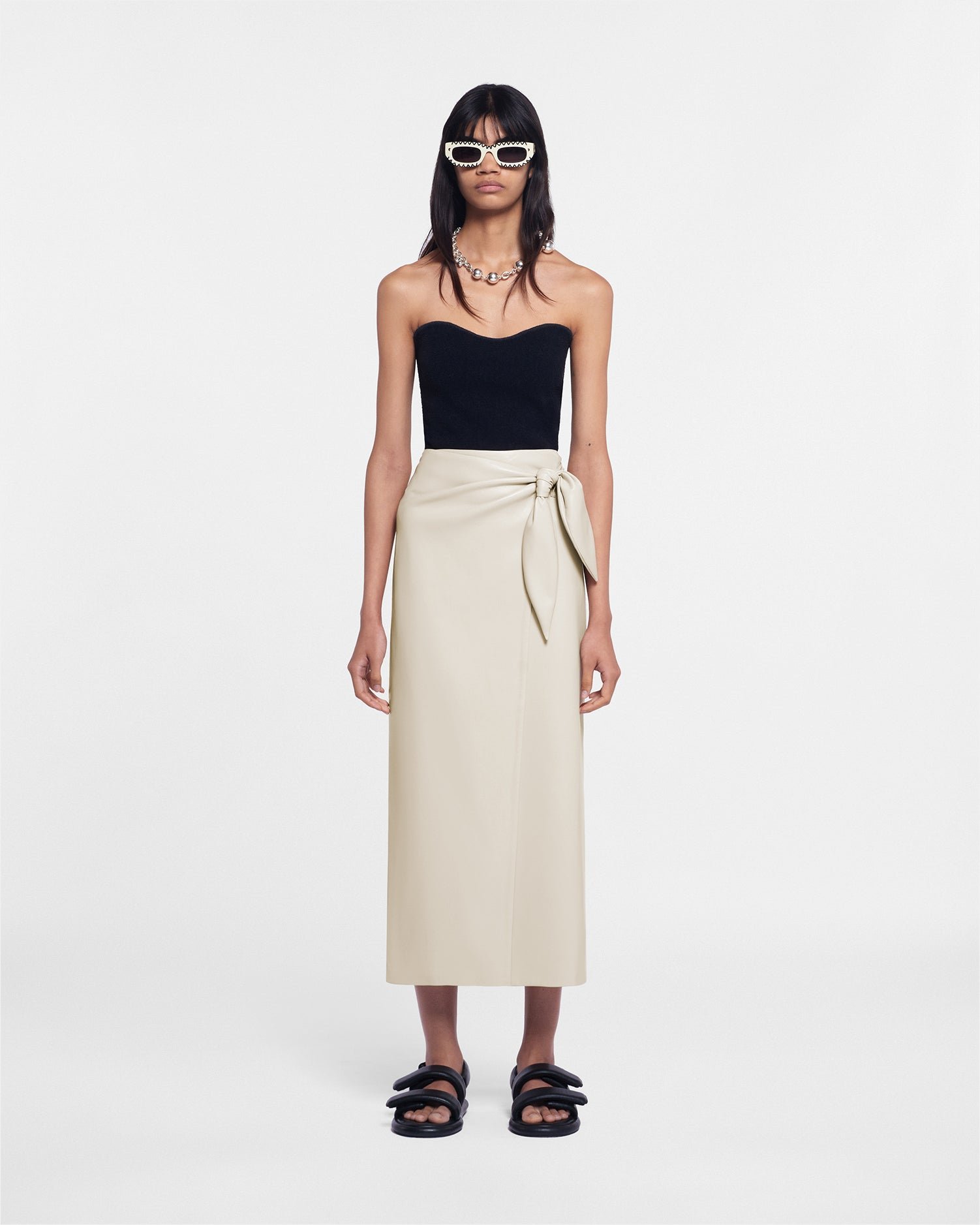 Amas – Okobor™ alternatív bőrből készült sarong szoknya – krémszínű