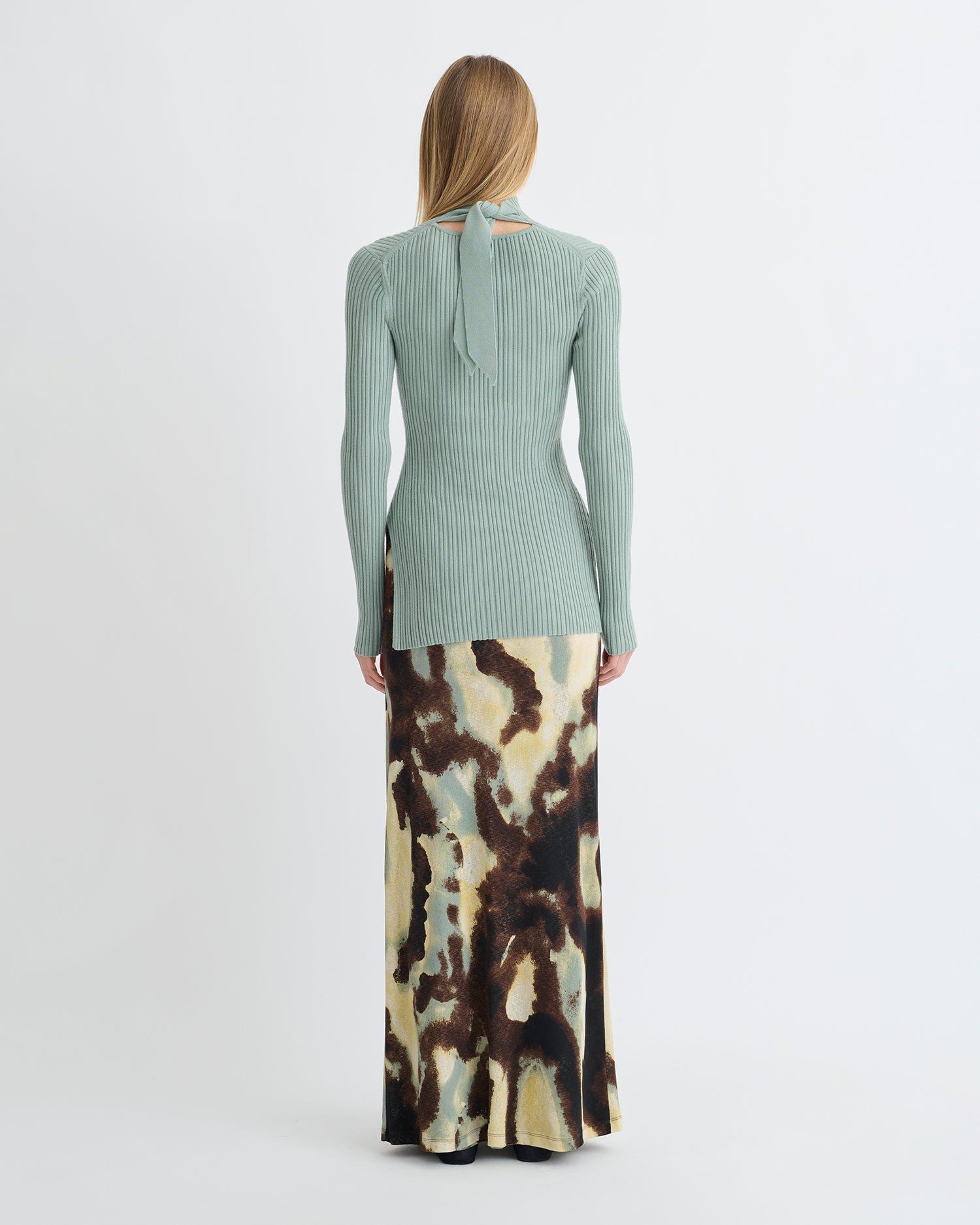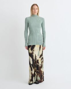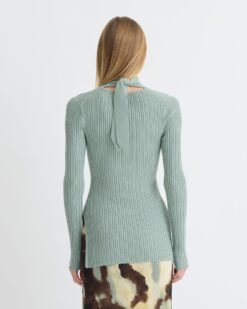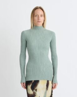 A Nanushka Arella felsője újraértelmezi a modern rétegezést és a csendes kifinomultságot. Finom merinó gyapjúból készült, testhez simuló garbó, finom hátsó nyakpánttal. Zsálya színű Arella felső a strukturált eleganciát és a mindennapi viselet kényelmét ötvözi.