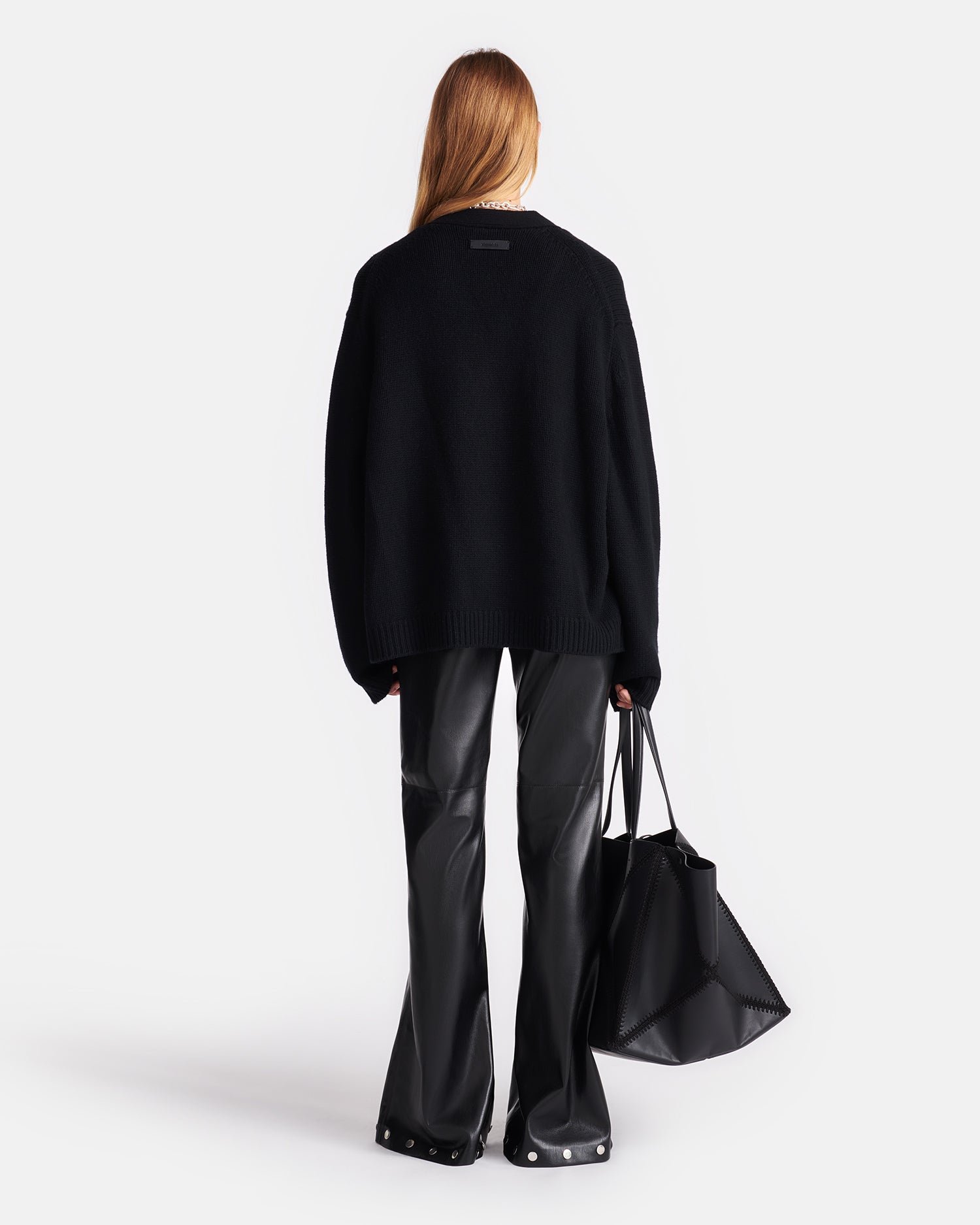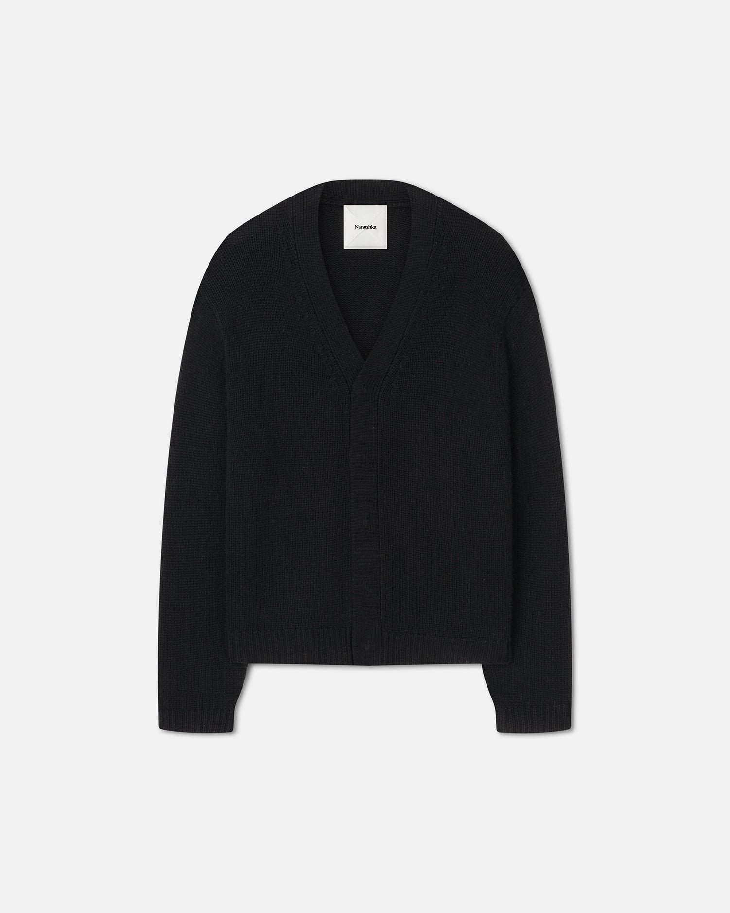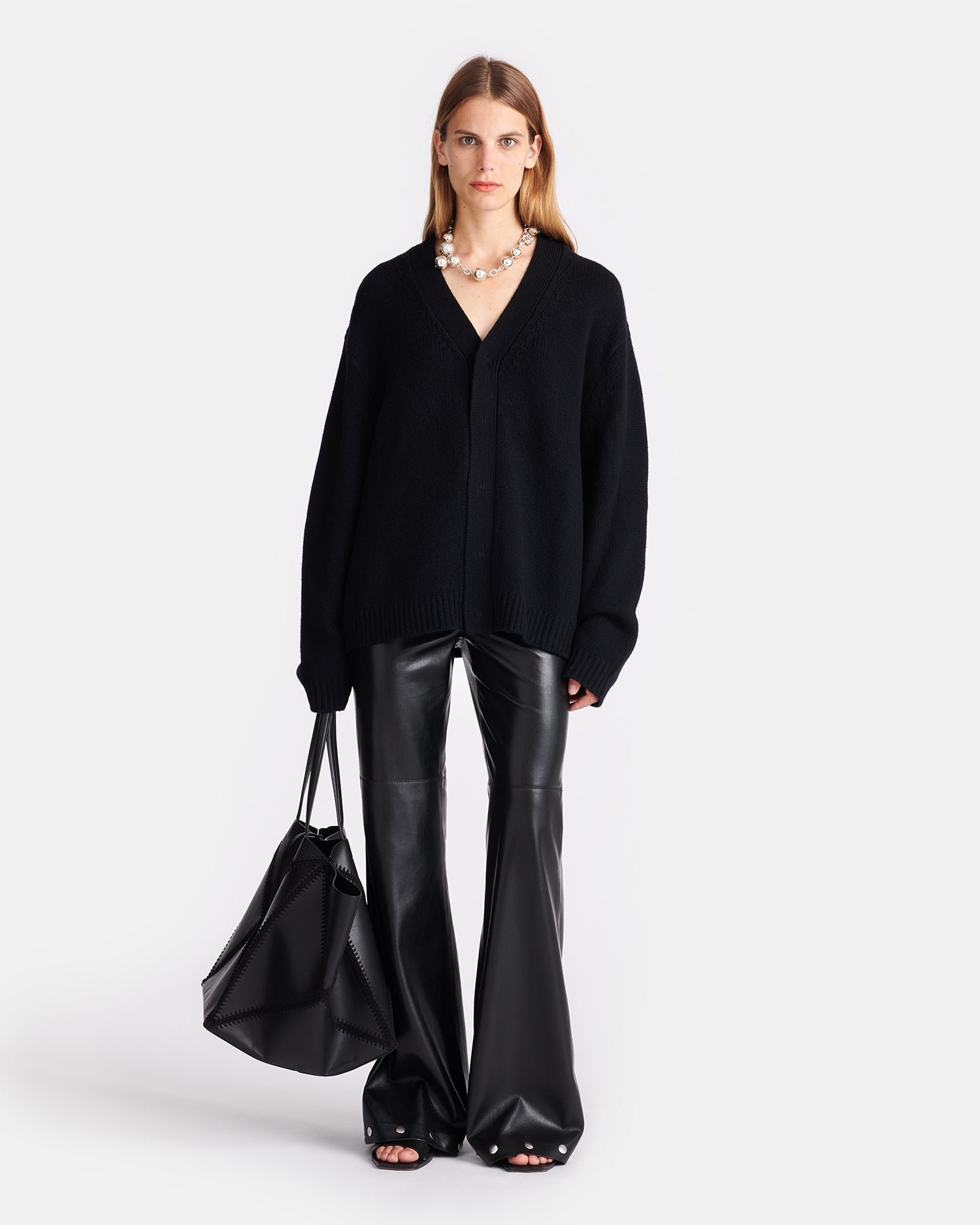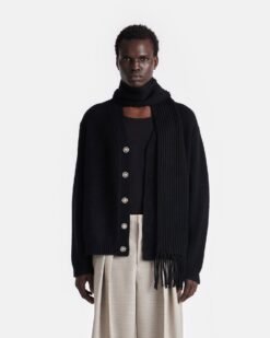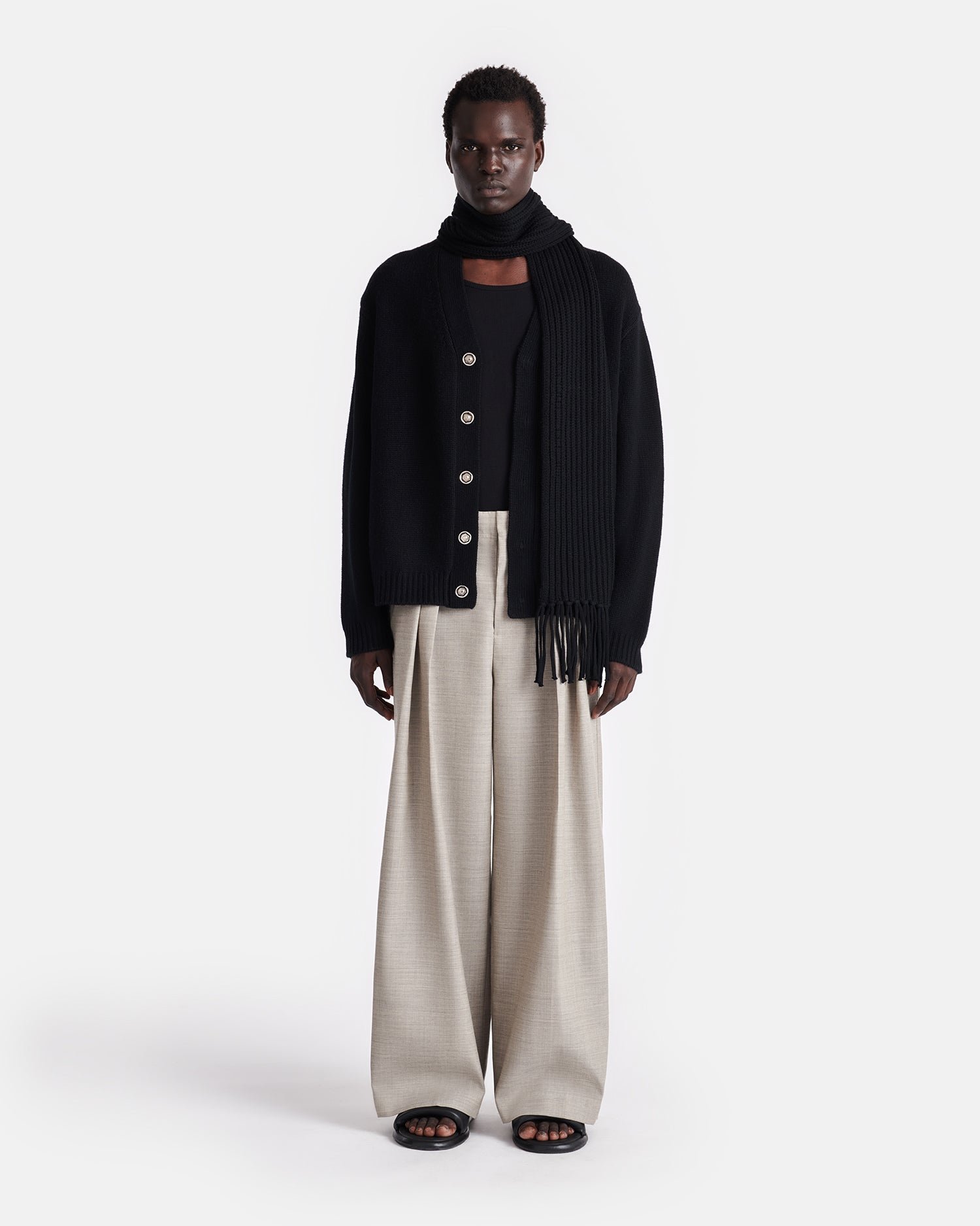 A Braye kardigán egy egyszerű és könnyen rétegezhető darab, amiről nem kell kétszer is gondolkodnod. A legpuhább kasmírkeverékből kötött, így kényelmes, túlméretezett szabást biztosít, és klasszikus fekete színben kapható.