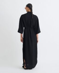 A Damala ruhában minden időtlen. Fekete tech lenből készült, amelyet a felesleges anyag archívumunkból újrahasznosítottak, és klasszikus ing sziluettje van. A túlméretezett szabást bő ujjak és derékszorító öv határozza meg.