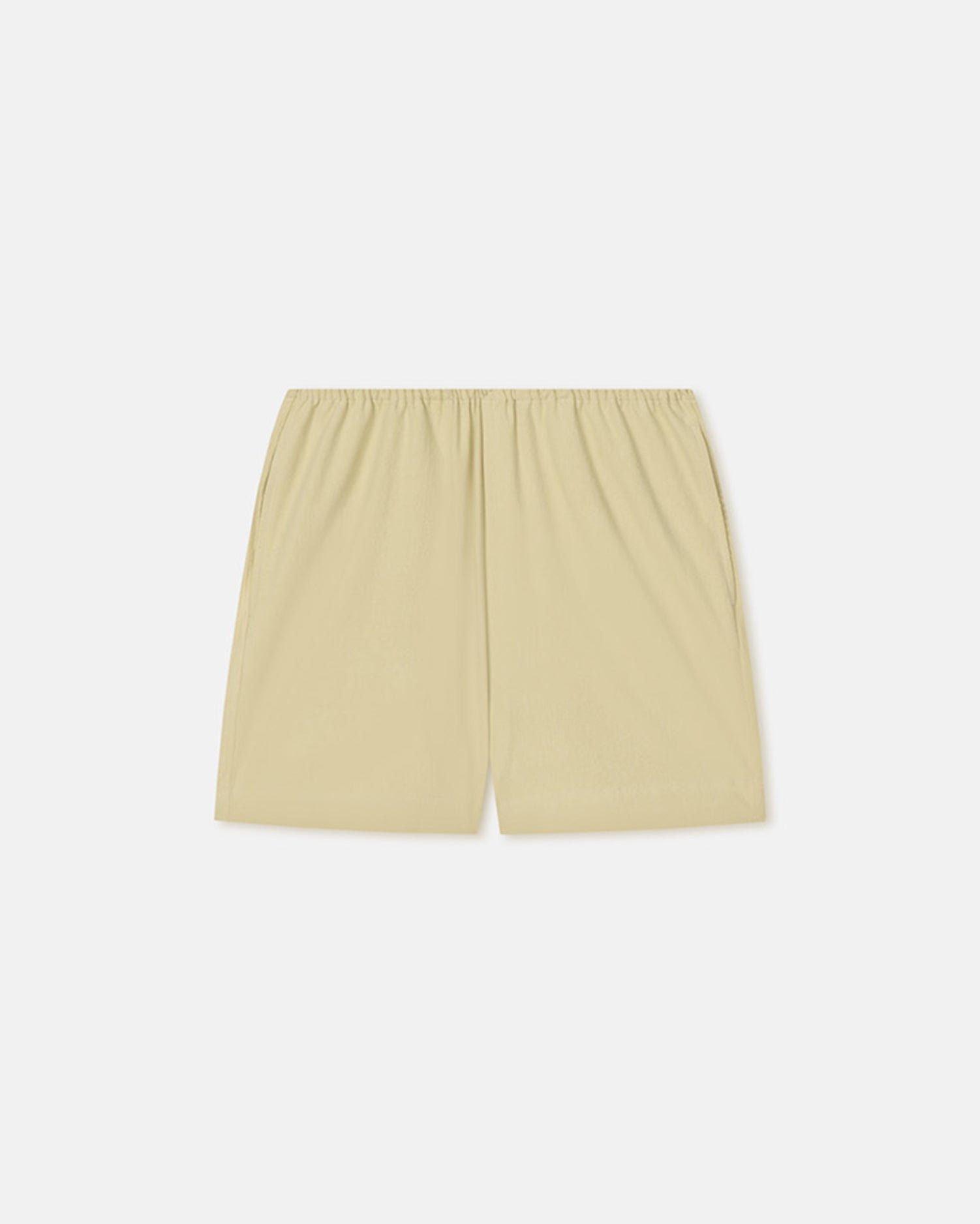 A Dylla rövidnadrág zsályásan mosott kartonból készült, amelyet raktáron lévő anyagkönyvtárunkból újrahasznosítottunk. Könnyű és haszonelvű ihletésű, magas derekú, húzózsinóros megkötőkkel a rugalmasság érdekében.