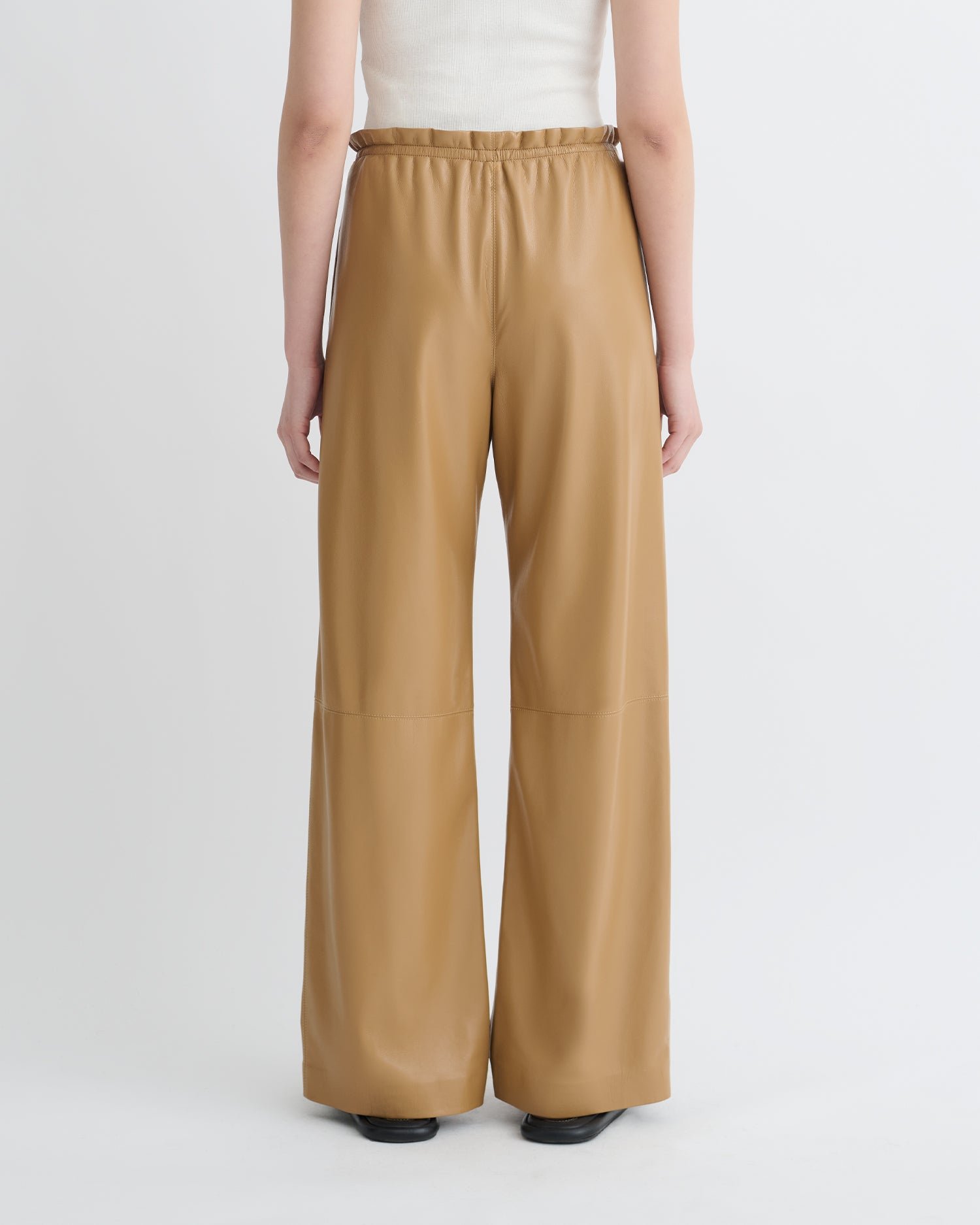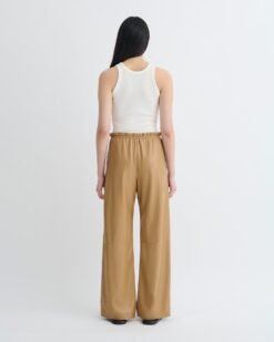 A Geb nadrág innovatív Okobor™ műbőrünkből készült, amely a magas derekánál ráncolt. Laza szárú, mélyen a padlóig érő szabású, gazdag tölgyfa árnyalatú.