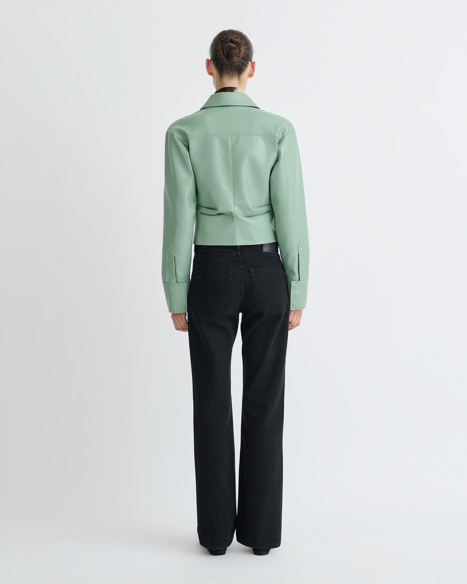 Az jellegzetes Okobor™ bőrből készült Hildie ing a struktúrát és a folyékonyságot könnyed szabással ötvözi. Feszes dereka és lágyan széttárt szegélye előnyös, szoborszerű sziluettet alkot gazdag zsálya árnyalatban. A csendes erő szimbólumaként ez az ing a 25-ös őszi-téli kollekció transzformatív szellemiségét testesíti meg, időtlen eleganciát kínálva, amely zökkenőmentesen átváltozik az évszakok között.