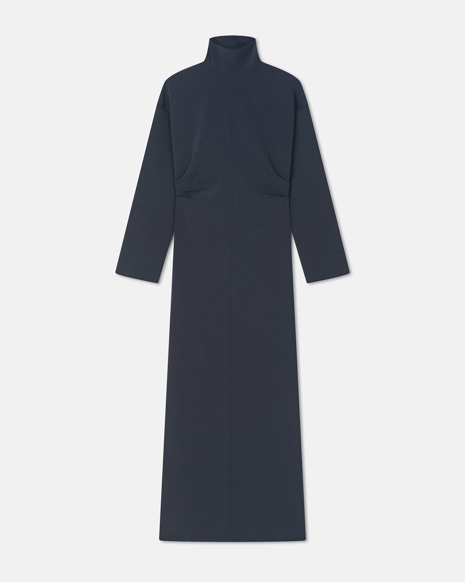 A Jasmon ruha könnyű papírdzsörzé anyagból készült, amely gyönyörűen omlik a test köré. Visszafogottan elegáns, garbóval és poroskék árnyalatban kapható.