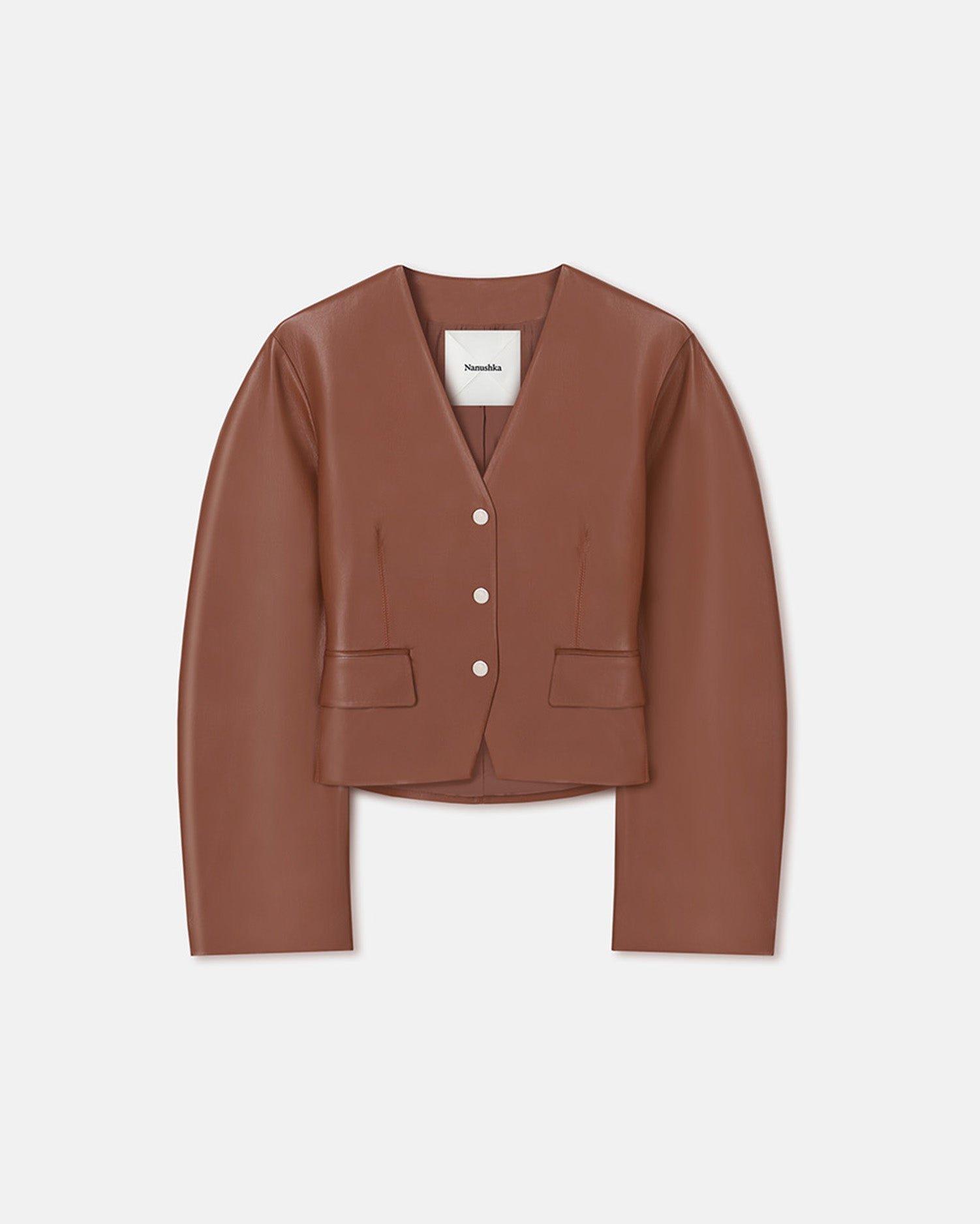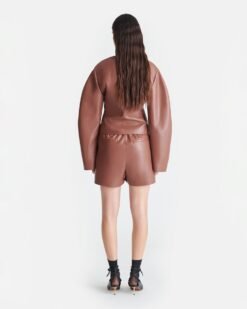 A Kiyo dzseki szakértők szabása alatt áll, jellegzetes OKOBOR™ műbőrünkből, új henna árnyalatban. Extra friss és modern hatást kelt a gallér nélküli kialakításnak, a bevarrt deréknak és a lekerekített ujjaknak köszönhetően.