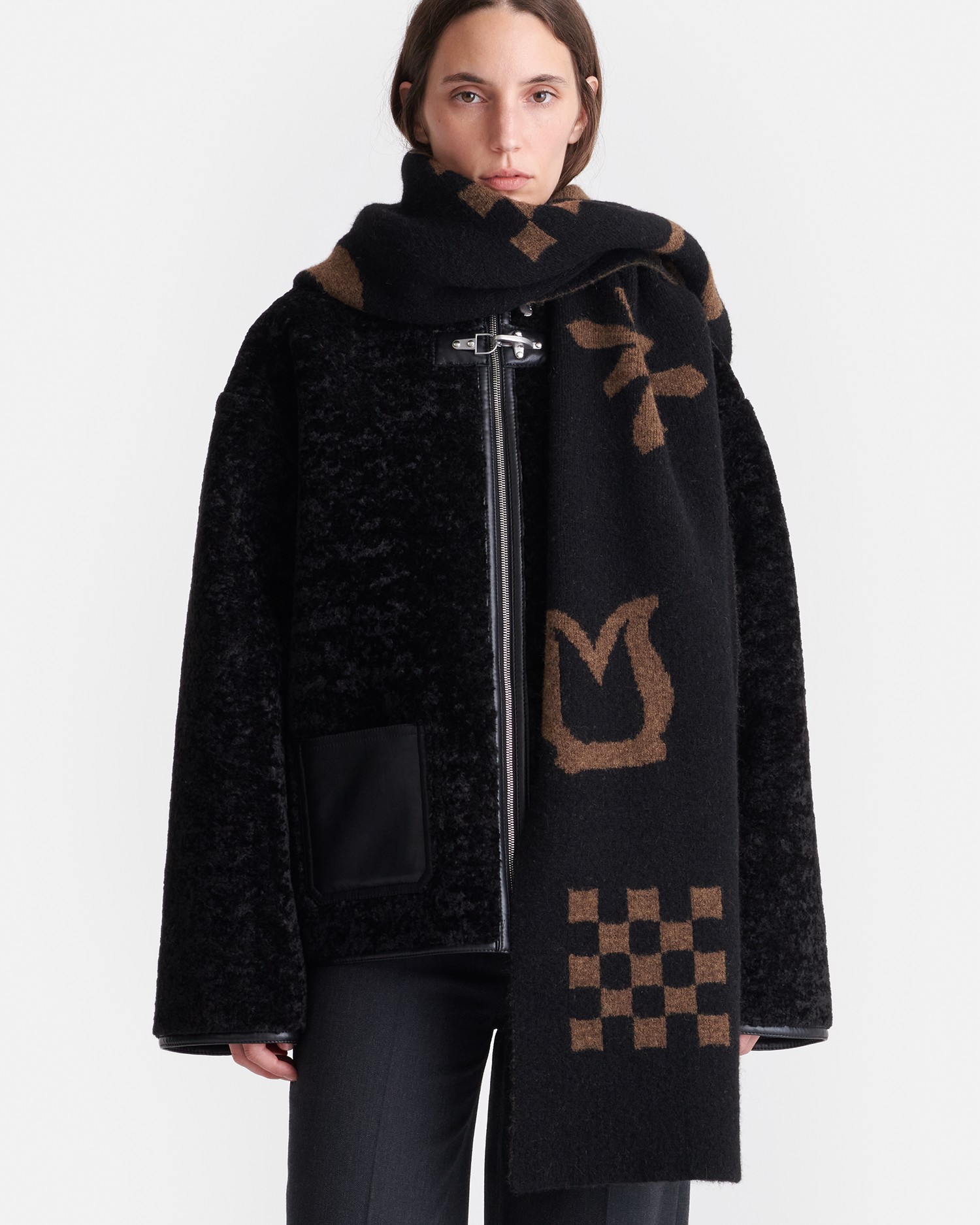 A Lance sál bőséges alpakagyapjú keverékéből készült, ami pazarul puha és tapintású érzetet kölcsönöz neki. A fekete és barna paletta időtlen hideg időjárási kiegészítővé teszi.