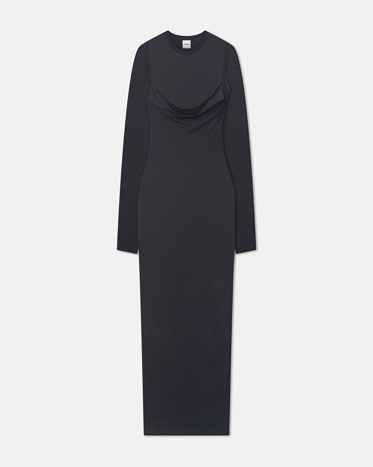 A Linora ruha a „csend a káosz közepette” érzésünket testesíti meg, egy meghívás arra, hogy megálljunk és értékeljük az egyszerűséget. Puha, szürke gyapjú jersey anyagból készült, szűk szabású, elegánsan drapézott nyakkivágással.