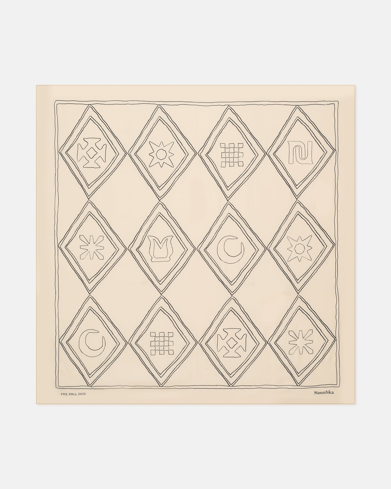 A Miani sálat Symbol Argyle nyomat díszíti, amely a hagyományos magyar kopjafa motívumok ihlette motívumok sokasága. Selyemből készült, és végtelenül variálható, a nyak és a vállak köré tekerhető, egészen a táska fogantyúja köré hurkolható.
