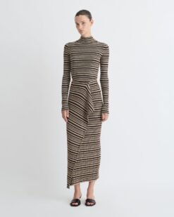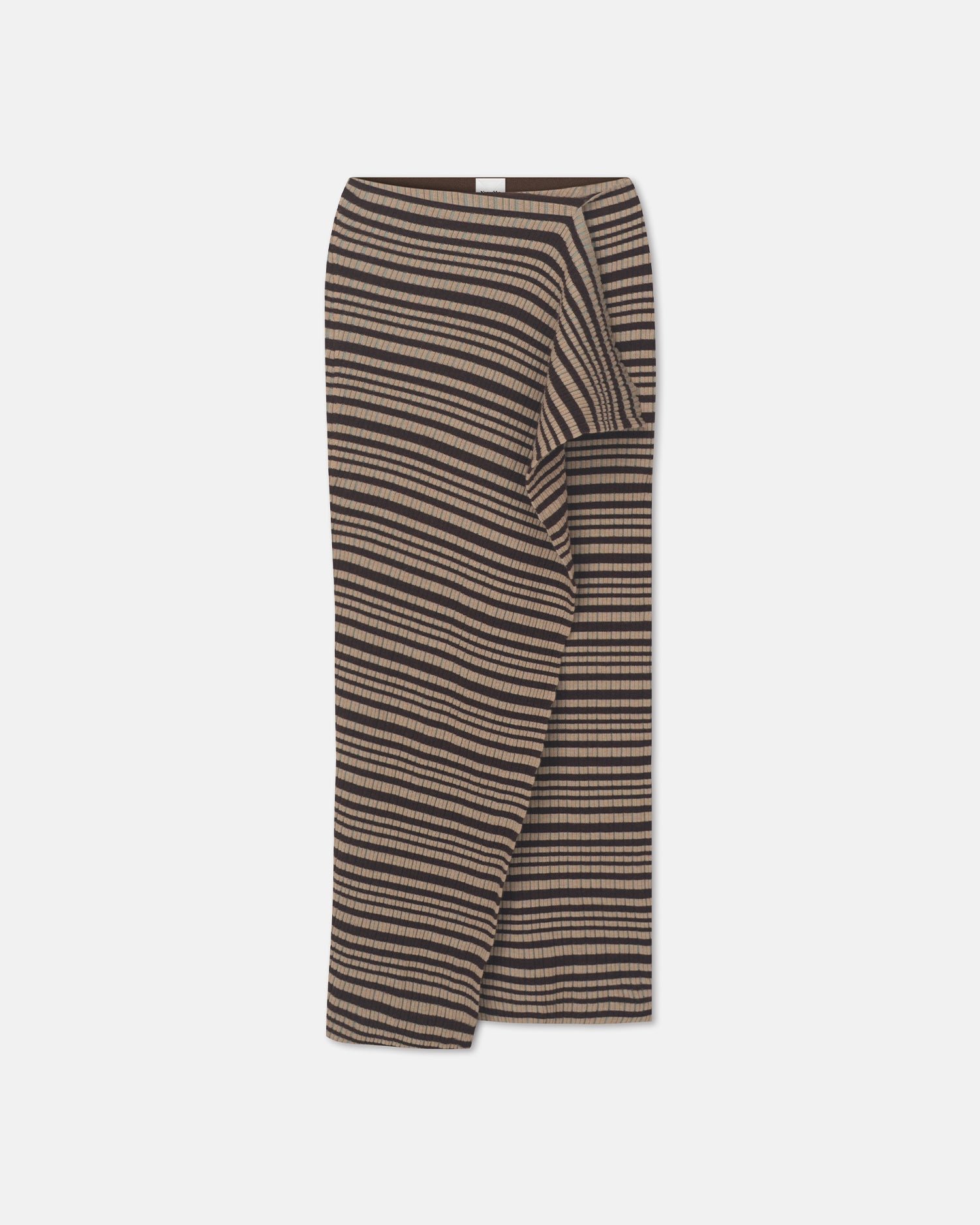 Nitsa – Finom merinó bordás, középhosszú szoknya – Fekete/barna/zöld csíkos
