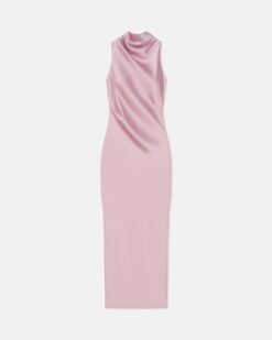 Peregrine – Kámzsás Nyakú Szatén Midi Ruha – Poros Rózsaszín