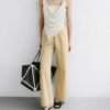 A Petra felső teljes egészében újrahasznosított, mosott, ekrü színű szaténból készült. Drapézott sziluettbe ereszkedik, széles pántjai és sál ihlette zsebkendő szegélye pedig könnyed eleganciát kölcsönöz neki.
