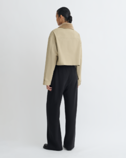 A Phebe kabát laza, mégis kifinomult. Összhangban a váratlan anyagkombinációk iránti régóta fennálló rajongásunkkal, sportos ihletésű tech twill anyagból készült, műszőrme gallérral. A szabása rövidített, tágas foltzsebekkel.