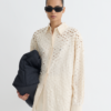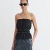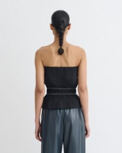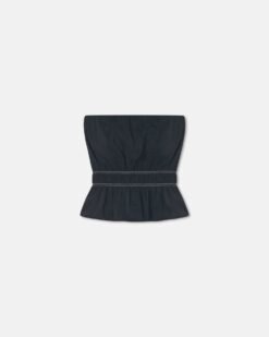 A Rosey felső a könnyedséget és az eleganciát ötvözi. Fényes üvegpuplinból készült, amely dúsított formát kölcsönöz neki, kontrasztos fehér varrással kiemelve a derekat.