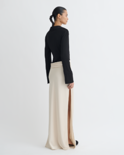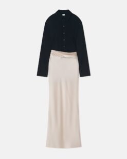 Scylla – Hálós, jersey és slip-on szatén ruha – Krém/Fekete