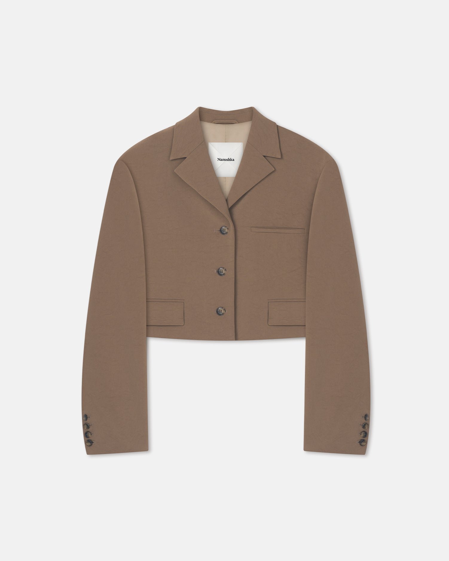 A Sinead blézer a hagyományos szabásmódhoz való kortárs hozzáállásunkat testesíti meg. Könnyű papírjersey anyagból készült, rövidített, dobozszerű sziluettje tökéletesen ellensúlyozza az áramvonalas, különálló darabokat.