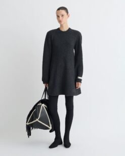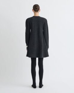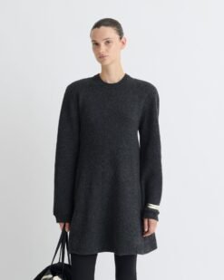 A Nanushka Yetta ruhája az időtlen egyszerűséget képzeli el újra. Átmosott merinóból készült, ez az A-vonalú kötött miniruha csendes struktúrával árad, míg az antracit árnyalat kifinomultságot kölcsönöz. A Yetta a funkcionális eleganciát testesíti meg, és úgy tervezték, hogy könnyedén váltson az évszakok között, tartós kényelemmel és könnyedséggel.