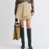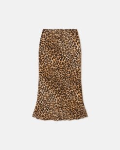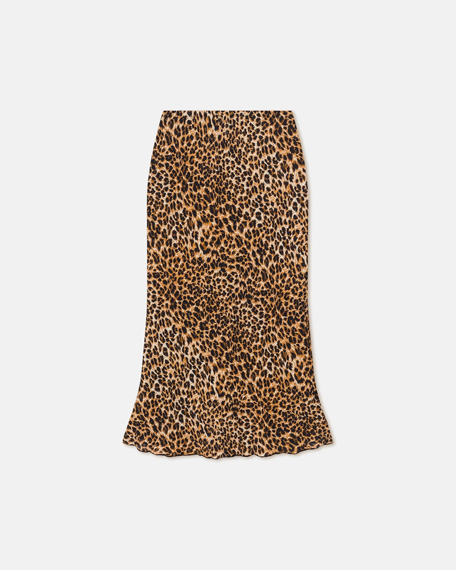A Zarina szoknya klasszikus szabásvonalak ihlették, letisztult vonalvezetésű, folyékony szabással. A 60-as évekbeli rakott anyagunkból, ocelot mintázattal készült, magasan ül a derékon, mielőtt a vádli közepéig érne.